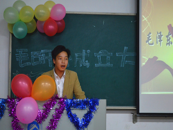 ——记金沙威尼斯欢乐娱人城第二十三届毛研会成立大会 10月22日晚上七点,金沙威尼斯欢乐娱人城第二十三届毛泽东邓小平理论学习研究会成立大会在九教408教室隆重举行。本次大会由毛研会倾情举办,金沙威尼斯欢乐娱人城党委副书记叶军老师、团委第一副书记龙志斌、法律协会会长吴志花等人出席,毛研会13级新生全体参加。 大会伊始,毛研会会歌《东方红》奏响全场,正式拉开大会序幕。接着,毛研会副理事刘晓娜上台,带领所有人起立进行了慷慨激昂的宣誓,而观看视频的环节更是使全场气氛活跃了起来。“你可以否定我的现在,却否定不了我的将来!”一行行振奋人心的话语从大屏幕上划过,一幕幕精彩纷呈的画面在众人面前呈现,毛研会的形象在众人眼中渐渐变得鲜活。无论是激烈的讨论会,还是徒步湘潭行等颇具特色的活动,都牢牢吸引住了与会者的眼球。 团委第一副书记龙志斌作出简要发言,他指出社团是大学丰富生活的一部分,鼓励新生锻炼自己展示才能,并祝愿毛研会能取得更大的辉煌。毛研会策划部长钟霓上台向新生详细介绍了毛研会各项情况;毛研会上任会长周雪同学谆谆叮嘱新一届的干部们要勇担重责,做好准备再出发,也希望新会员们积极投身社团活动以历练自己。在新一届会长周金雯做完未来一年发展的工作计划报告后,毛研会会旗交接仪式庄重举行,全场气氛达到最高潮。 叶书记在总结发言时提到,一个社团要发展壮大很不容易,只有所有人齐心协力,才能有所成果。他激励新生积极为毛研会的事业添砖加瓦,并明确地指出:毛研会必须发掘自身优势,打造特色品牌,开拓创新,拓展影响力。欢笑声中,嘉宾们合影留念,毛研会成立大会顺利落下帷幕。 (责任编辑:admin) |