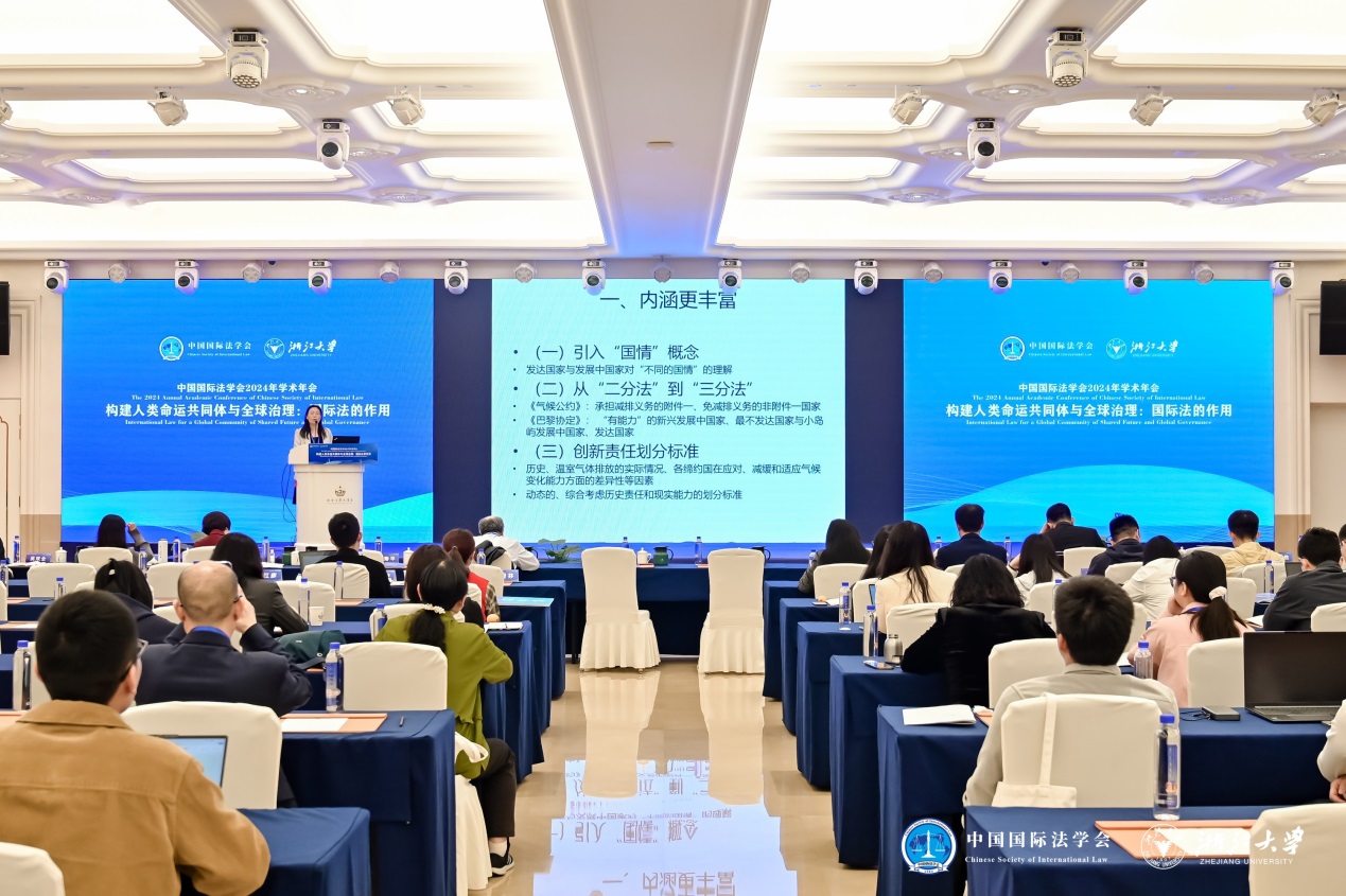 2024年4月26-28日,中国国际法学会2024年学术年会在杭州举行。本届年会由中国国际法学会和浙江大学主办,主题为“构建人类命运共同体与全球治理:国际法的作用”,涉及构建人类命运共同体与国际法、加快推进涉外法治体系和能力建设、海洋和极地的国际法、外空国际规则的新发展、网络空间与人工智能的法律规制、国际气候变化法与国际环境法、国际航空法的新发展、国际人权法和国际人道法、国际刑法与国际刑事司法协助、全球治理中的国际私法问题、全球治理中的国际经济法问题、国际法运用研究、国际法基本理论研究等十多个分议题。来自外交部以及北京大学、清华大学等几十所高等院校、科研院所的几百名专家学者与会。