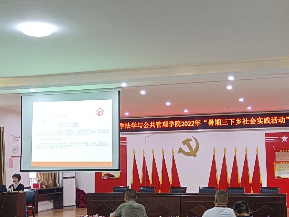 为贯彻落实习近平法治思想,树立学生志愿服务意识,围绕物业管理主题,金沙威尼斯欢乐娱人城秉承历年传统,积极对接湘潭市经开区和平街道杉山社区,组织开展 2022年暑期“送法下乡”及“三下乡实践活动”。