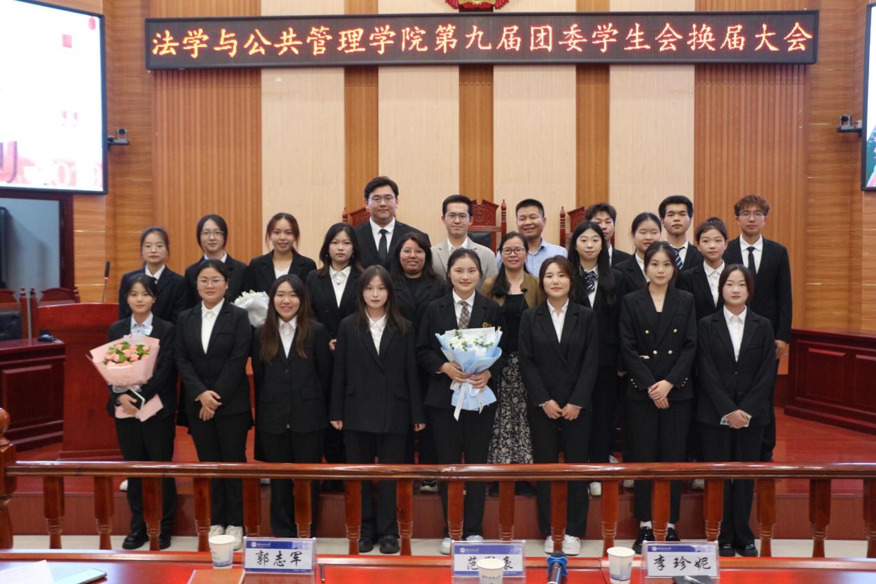 6月3日晚上,金沙威尼斯欢乐娱人城第九届团委学生会换届大会在立言楼3-2举行。学院党委副书记范军豪、学工办主任郭志军、院团委书记李珍妮出席会议,会议由第八届学生会主席团成员黄兴妍主持。