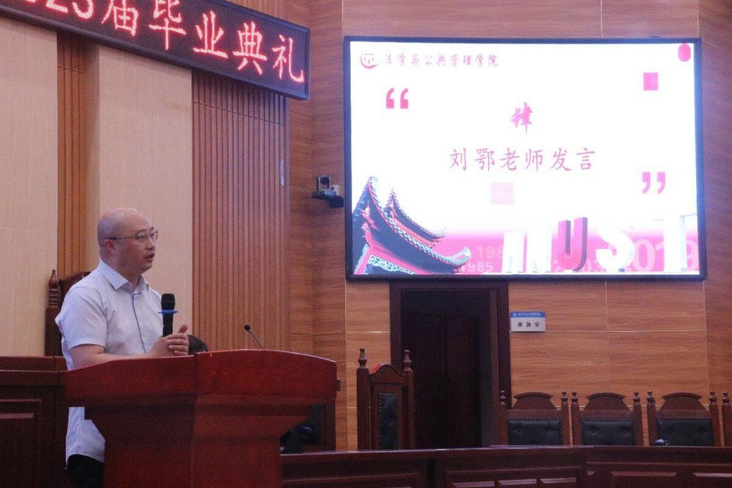毕业典礼伊始,院党委副书记范军豪向顺利完成学业的2023届毕业生表示热烈祝贺,并为即将踏上全新征程的学子们送上最真诚的祝福。同时,她叮嘱大家也要牢记并努力成为一个有格局、有品位、有善心的法管人;一个有目标、有耐心、有积极心态的法管人;一个有大义、有温度、有高尚情操的法管人。王院长布置毕业生论文相关工作事宜,辅导员李斌老师就就业工作相关事宜进行介绍。