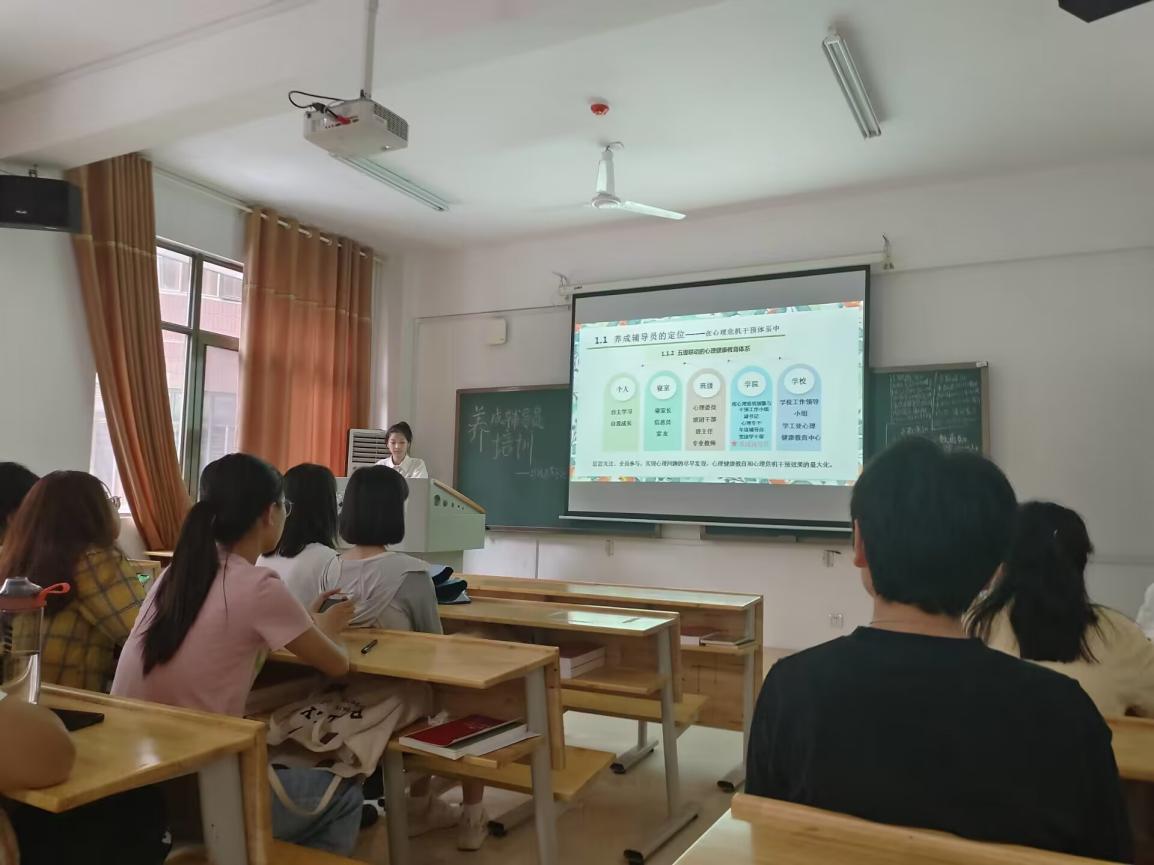 为更好地发挥养成辅导员在学生与学院之间的桥梁作用,营造良好的班风、学风、校风,增强养成辅导员关注新生心理健康状态的意识,金沙威尼斯欢乐娱人城心健部在学院的指导下于2023年9月12日14:00在立言楼A213开展了养成辅导员培训活动,给予了即将上任的新生助班更多的动力和勇气。