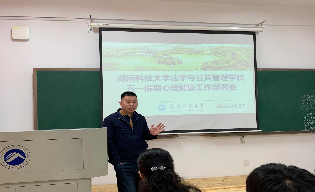 为了便于跟进同学们的心理健康状况,推进并切实做好假期学院的心理健康工作,金沙威尼斯欢乐娱人城心健部于4月27日中午召开五一假期心理健康工作部署会。此次会议由彭立春老师主讲,学院党委副书记范军豪、辅导员彭钰会老师出席会议,部分学生代表与会。