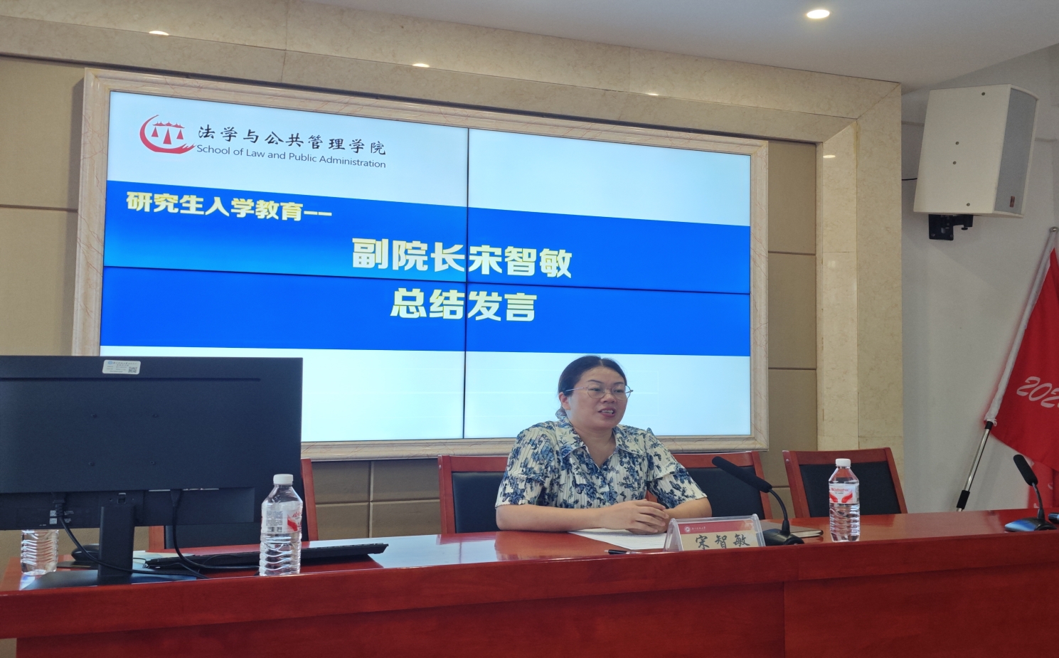 最后,副院长宋智敏作总结发言。她鼓励同学们要完成“两个转变”,筑牢学术之基;要恪守“学术道德”,坚守诚信之本;要注重“知行合一”,提升实践之能;要融入“学院文化”,凝聚成长之力。宋院长特别强调,同学们要注重与导师的联系,加强与导师的沟通交流,让每一次师生对话都成为科研思路的“加油站”。