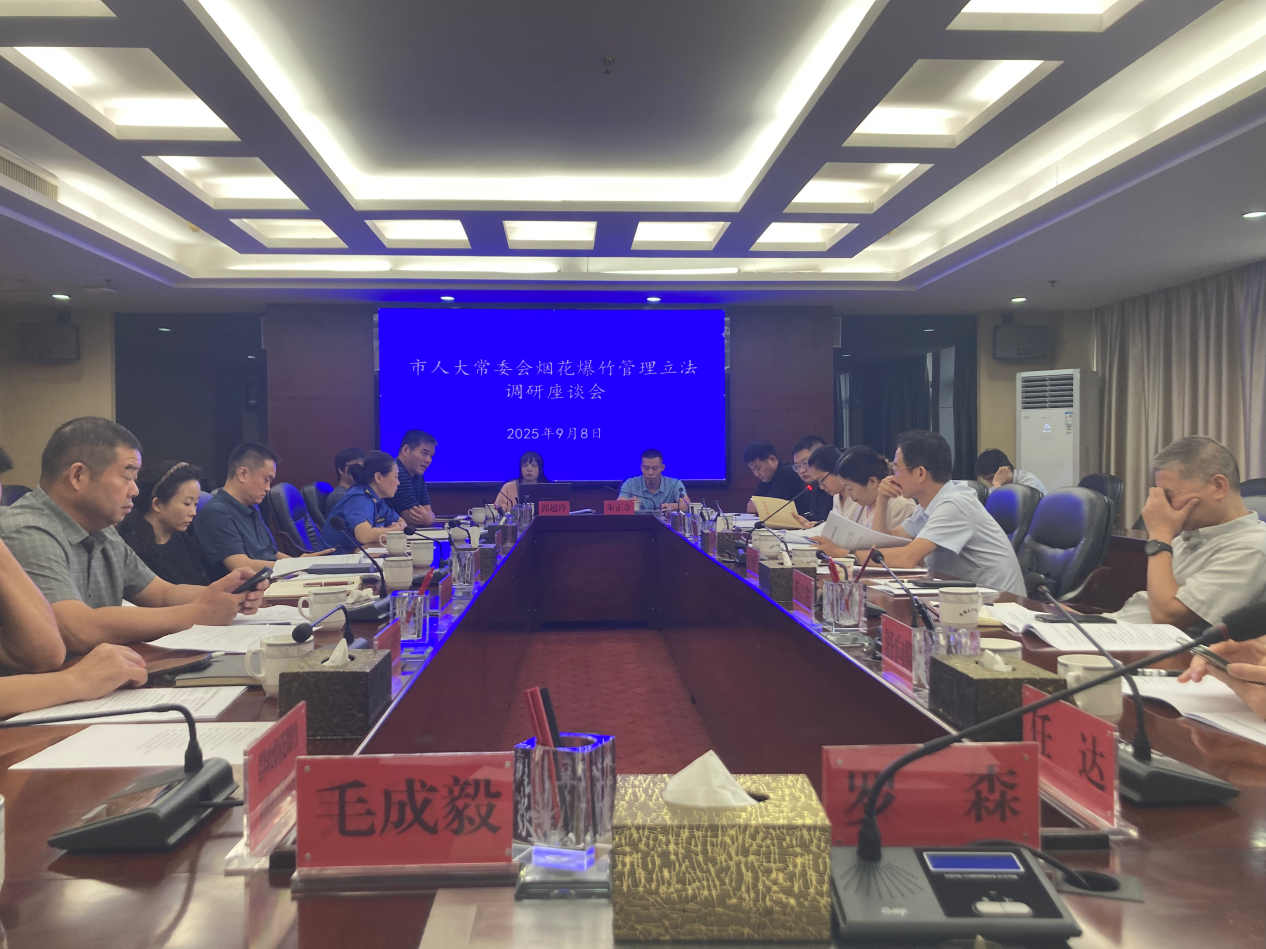 座谈会上,调研组与当地县(市、区)人大常委会及应急管理、公安、市场监管、交通运输、生态环境等部门负责人,以及批发零售企业代表,围绕烟花爆竹经营许可管理、安全储存规范、运输监管要求、零售网点布局、区域禁限放政策、执法监管机制等核心议题进行了深入研讨。